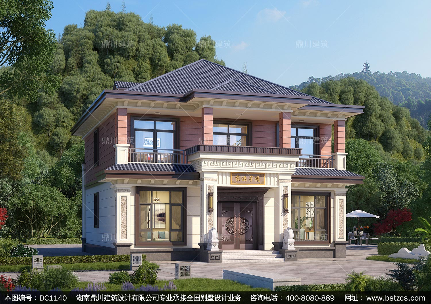 新中式二層帶陽臺別墅圖紙及效果圖_農村自建別墅設計,鼎川建筑