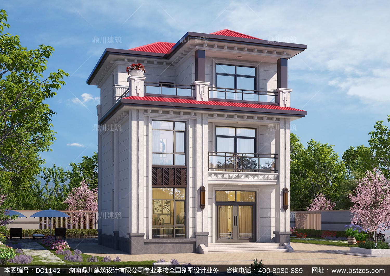 新中式三層小戶型別墅施工圖紙及效果圖_農村自建別墅設計,鼎川建筑