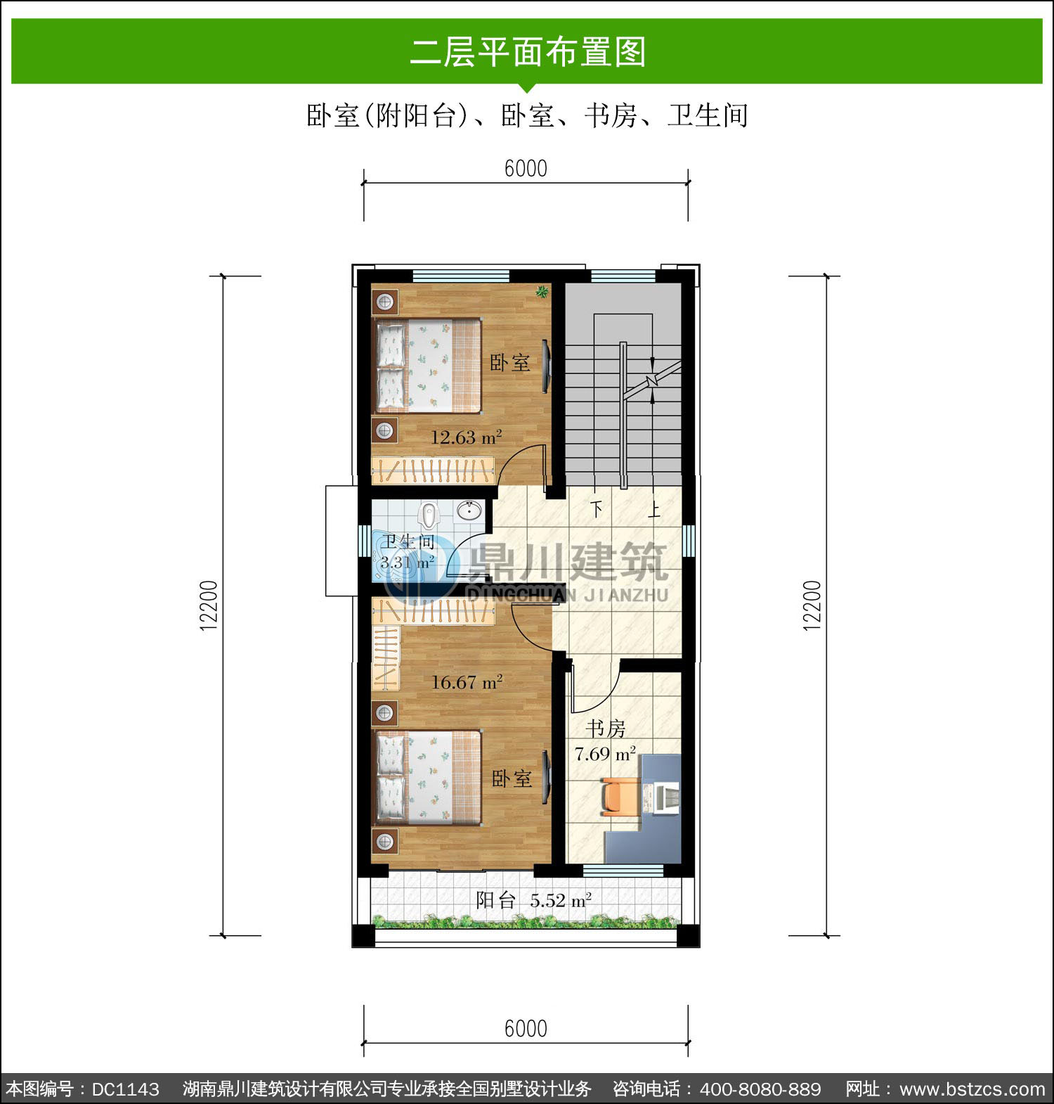 | 二 層: | 臥室(附陽臺)、臥室、書房、衛生間 | |||