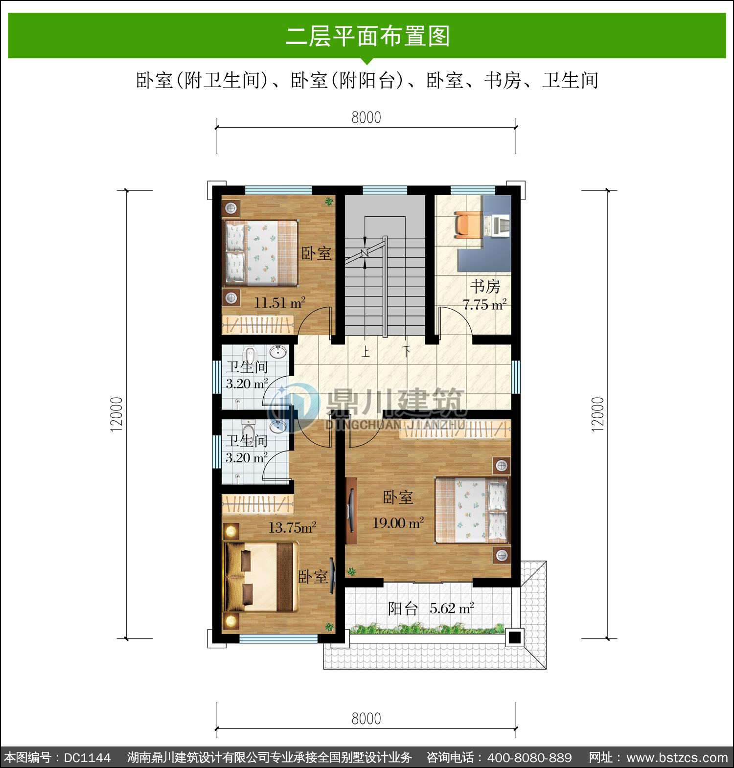 | 二 層: | 臥室(附衛生間)、臥室(附陽臺)、臥室、書房、衛生間 | |||