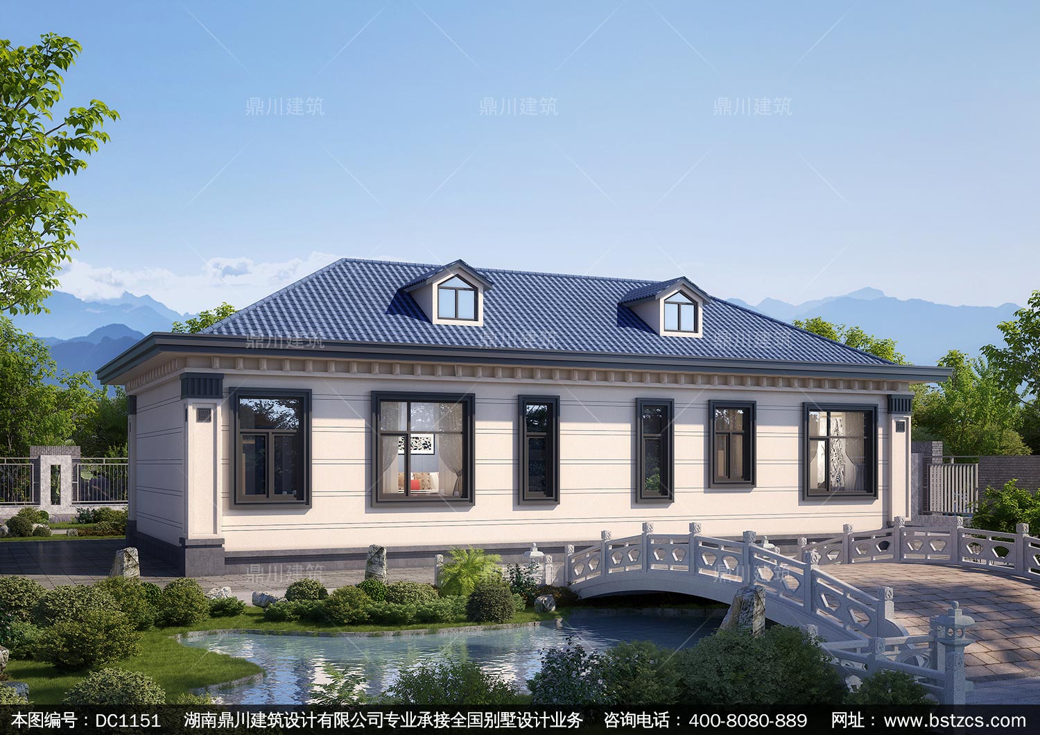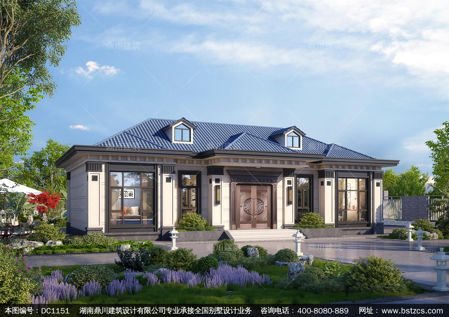 新中式一層別墅施工圖紙及外觀效果圖_農村自建別墅設計,鼎川建