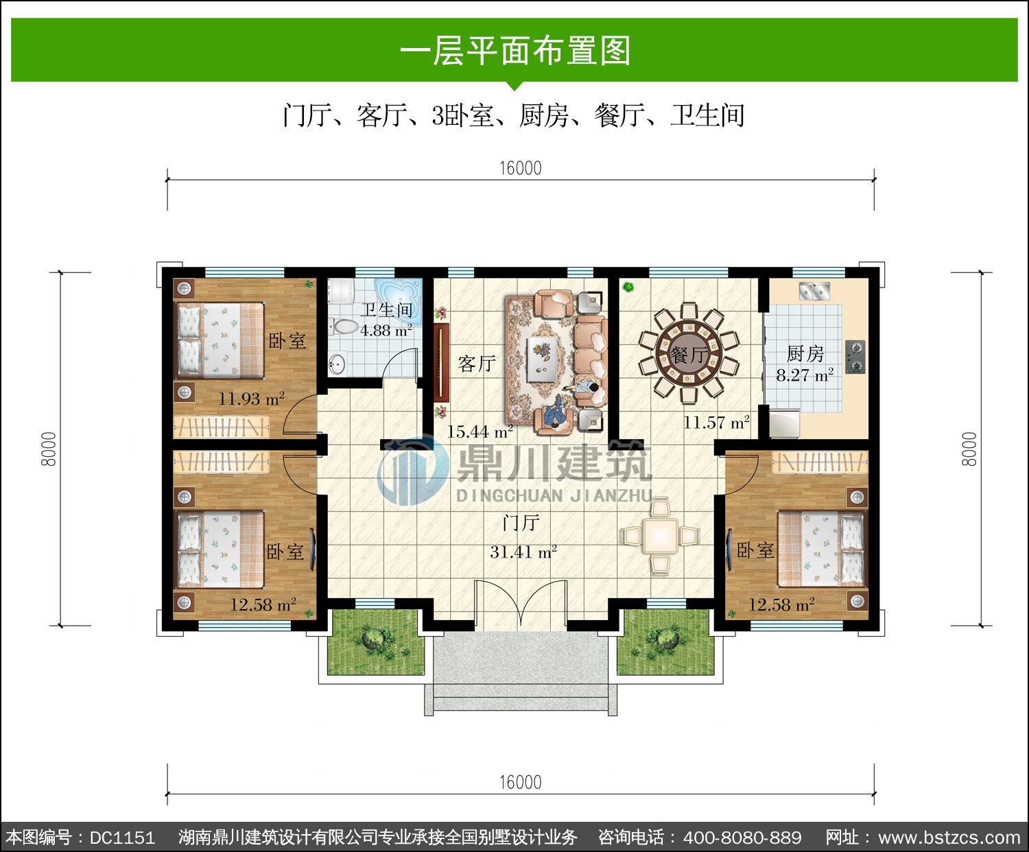 | 編號: DC1151 | 層數: 一層 | 結構形式: 磚混結構 | 主體造價: 18-23萬 |