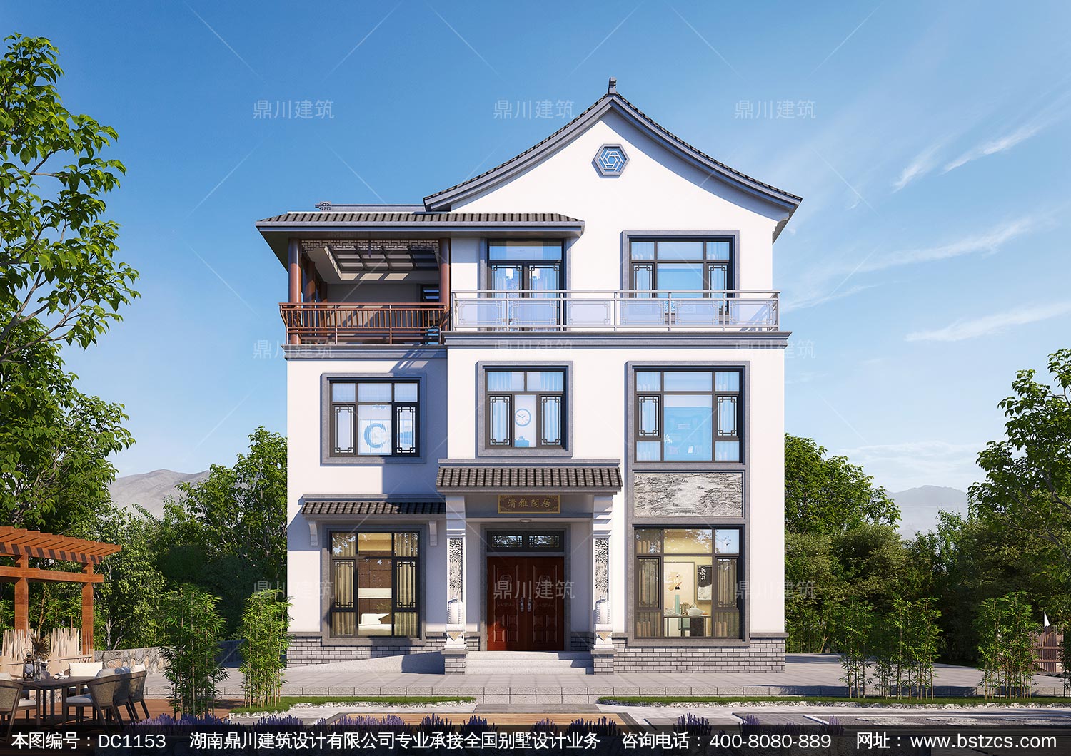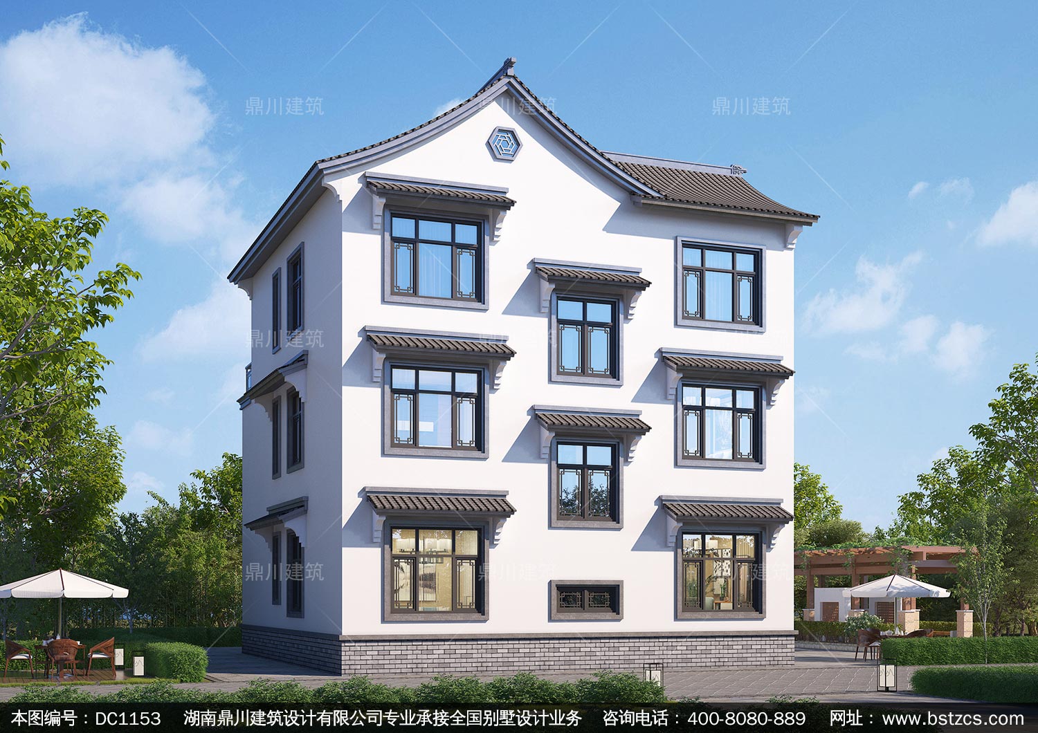 三層中式風格別墅效果圖及施工圖紙_新農村自建別墅設計,鼎川建筑