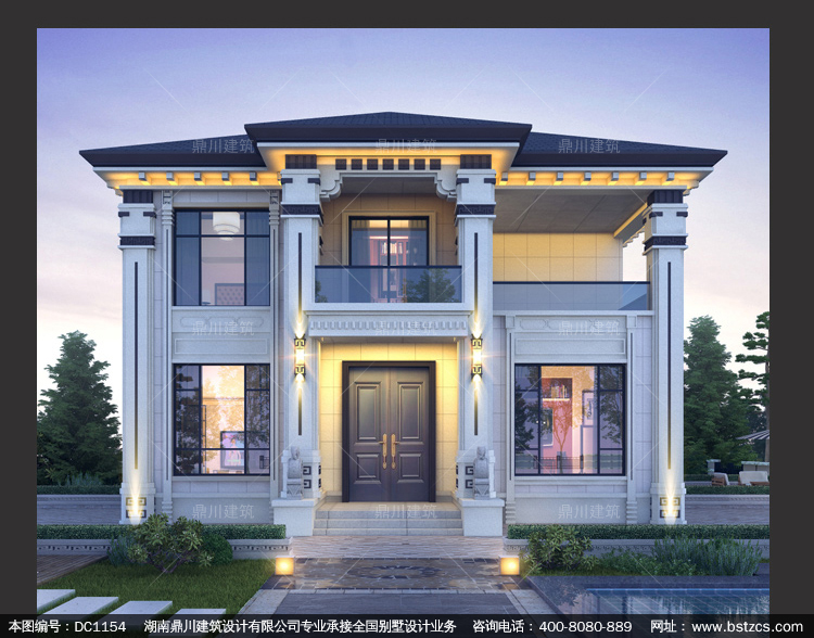 新中式兩層別墅施工圖紙及效果圖_農(nóng)村兩層自建別墅設(shè)計,鼎川建筑