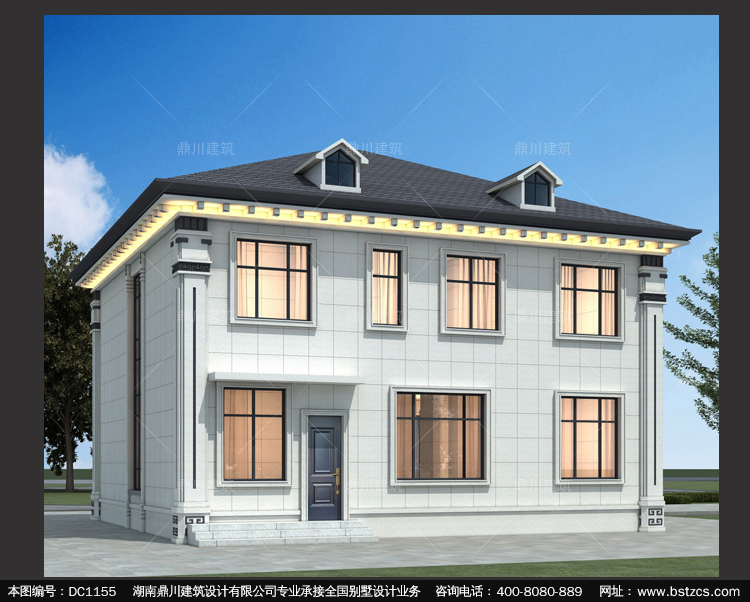 新中式二層別墅施工圖紙及外觀效果圖_農村自建別墅設計,鼎川建