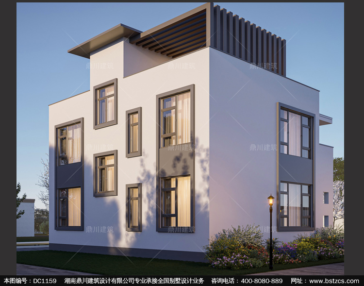 現代二層平頂別墅圖紙及外觀效果圖_新農村自建別墅設計,鼎川建