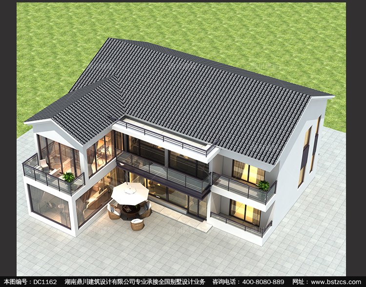 兩層現代民宿風格別墅圖紙及效果圖_新農村自建別墅設計,鼎川建筑