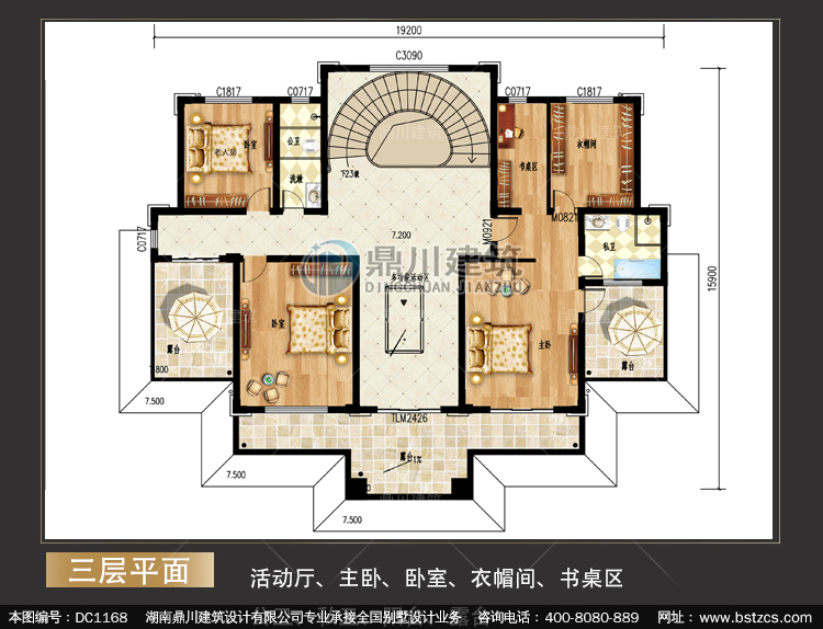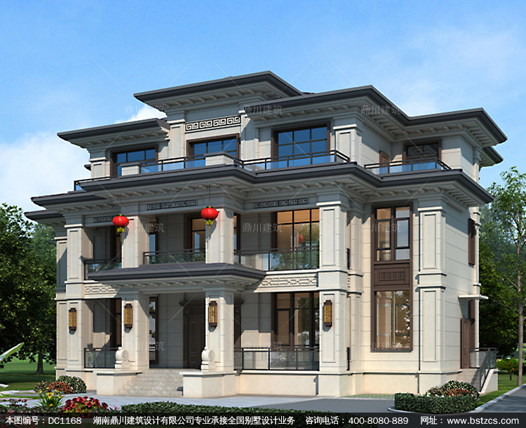 新中式三層帶旋轉(zhuǎn)樓梯別墅圖紙及效果圖_新農(nóng)村自建別墅設(shè)計,鼎川建筑