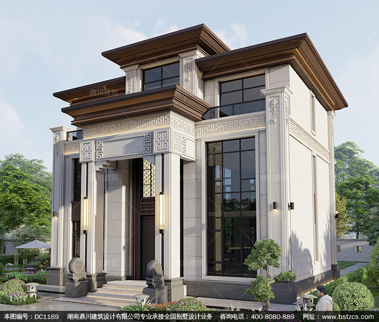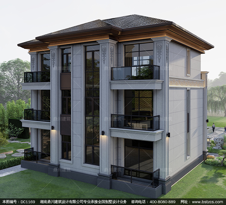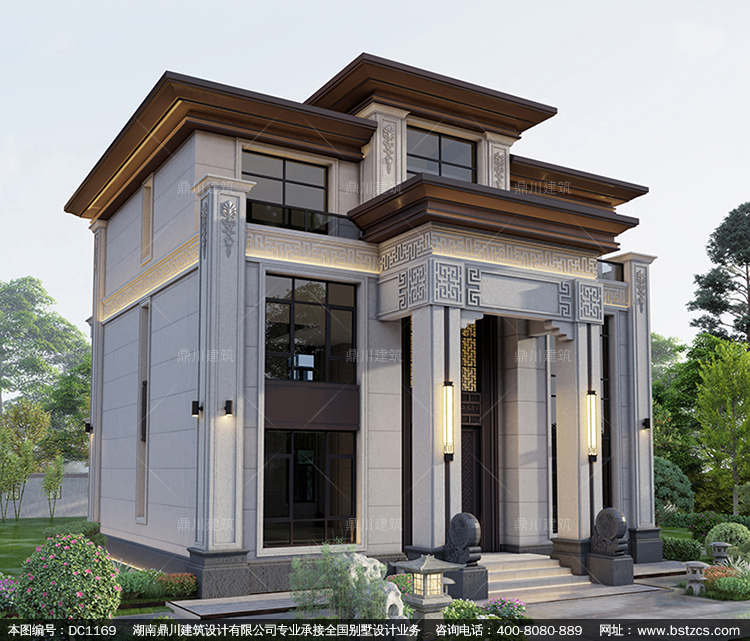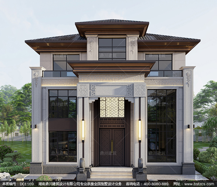 大氣新中式三層帶堂屋別墅圖紙及效果圖_新農(nóng)村自建別墅設(shè)計(jì),鼎川建筑