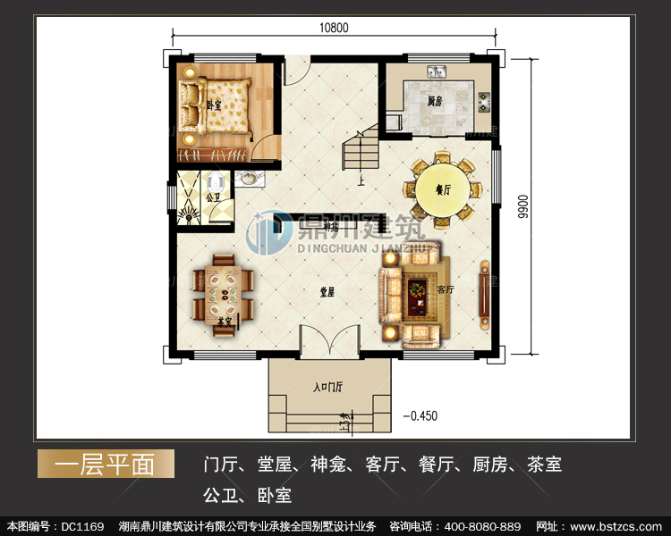 | 一 層: | 門廳、堂屋、神龕、客廳、餐廳、廚房、茶室、公衛(wèi)、臥室 | |||