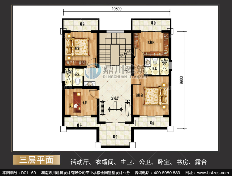| 三 層: | 活動(dòng)廳、衣帽間、主衛(wèi)、公衛(wèi)、臥室、書房、露臺(tái) | |||