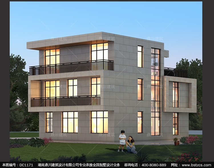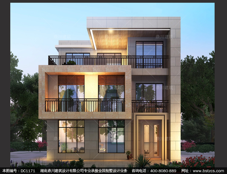 三層現代復式別墅圖紙及效果圖_新農村平屋頂自建房設計,鼎川建