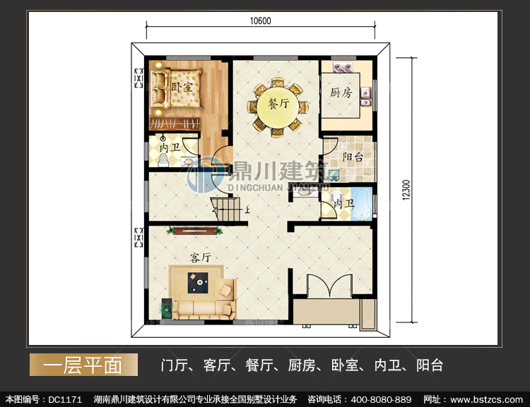 | 一 層: | 門廳、客廳、餐廳、廚房、臥室、內衛、陽臺 | |||