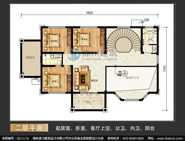 三層復式帶旋轉(zhuǎn)樓梯別墅圖紙及外觀效果圖_農(nóng)村自建別墅設計,鼎
