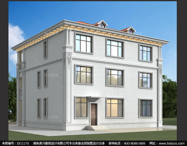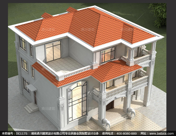 歐式三層帶露臺別墅施工圖紙及效果圖_鄉村自建別墅設計,鼎川建