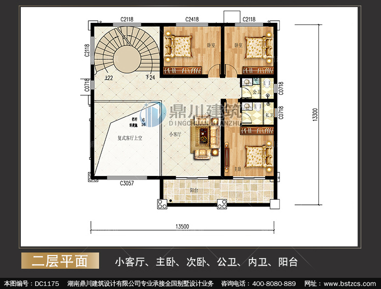 | 開間: 13.5米 | 進深: 13.3米 | 占地面積: 177.65平方米 | 建筑面積: 494.14平方米 |