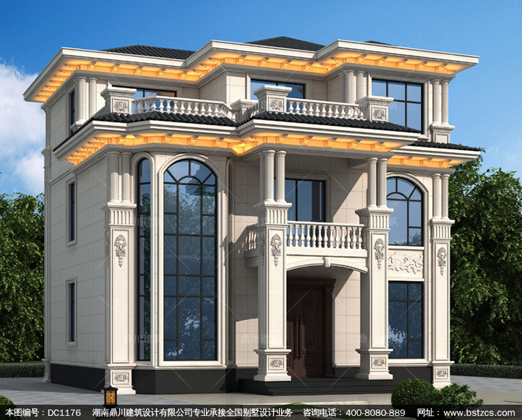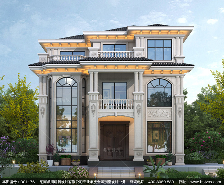 大氣歐式三層復式別墅圖紙及效果圖_農(nóng)村自建別墅設計,鼎川建筑