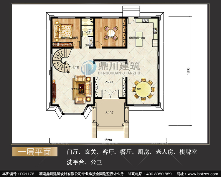 | 一 層: | 門廳、玄關、客廳、餐廳、廚房、老人房、棋牌室\洗手臺、公衛(wèi) | |||