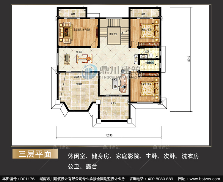 | 三 層: | 休閑室、健身房、家庭影院、主臥、次臥、洗衣房公衛(wèi)、露臺 | |||