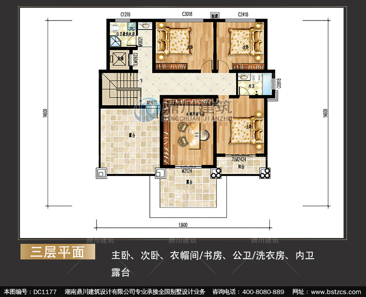 | 三 層: | 主臥、次臥、衣帽間/書房、公衛/洗衣房、內衛、露臺 | |||