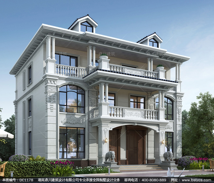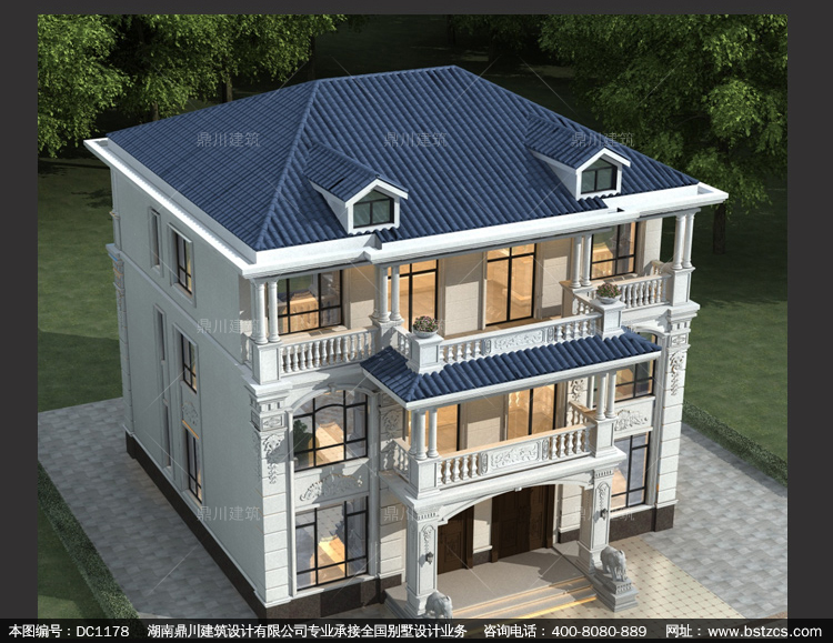 歐式三層雙拼別墅圖紙及外觀效果圖_新農村自建別墅設計,鼎川建