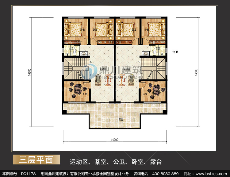 大氣新中式三層雙拼別墅圖紙及效果圖_農村自建別墅設計,鼎川建