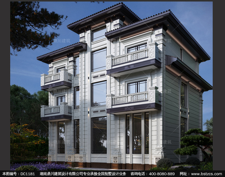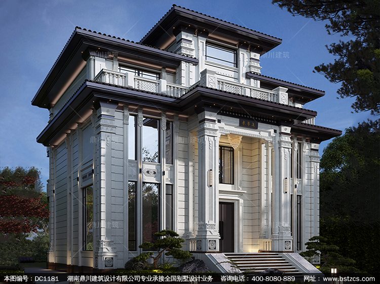 大氣三層新中式別墅設計圖紙及效果圖_農村自建別墅設計,鼎川建