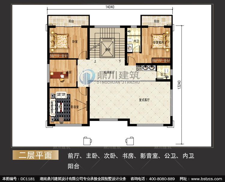 | 二 層: | 前廳、主臥、次臥、書房、影音室、公衛、內衛、陽臺 | |||