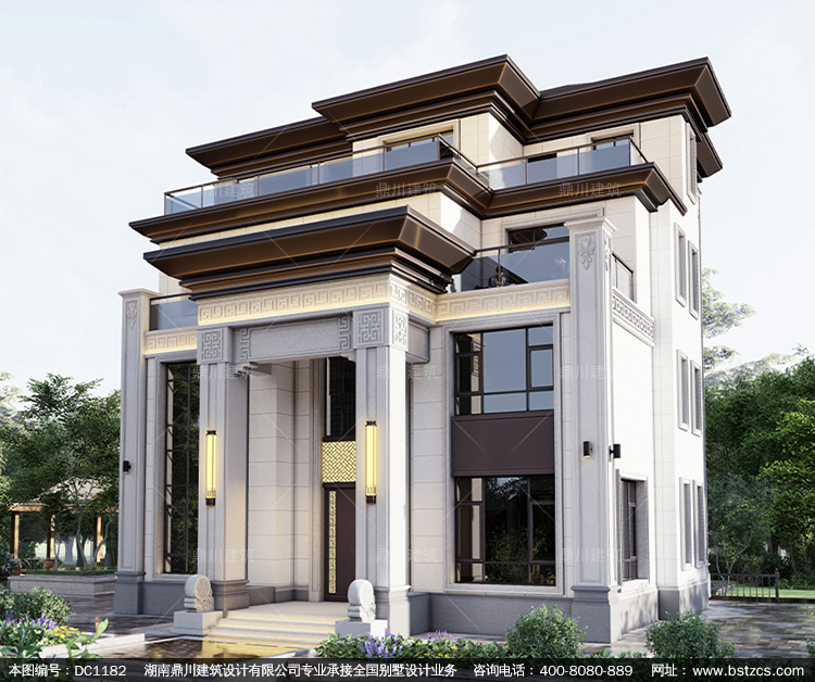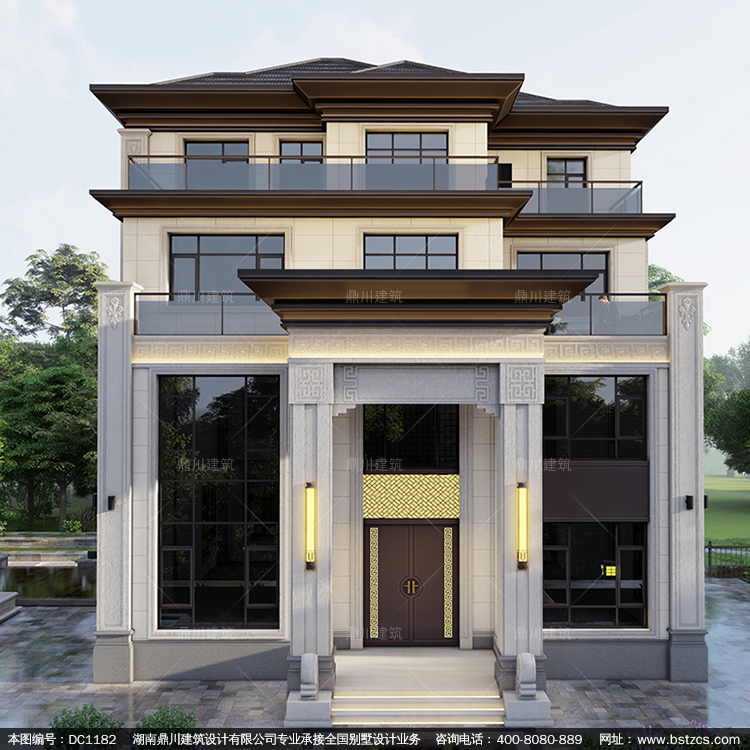 大氣新中式四層別墅施工圖紙及效果圖_新農村自建別墅設計,鼎川建筑