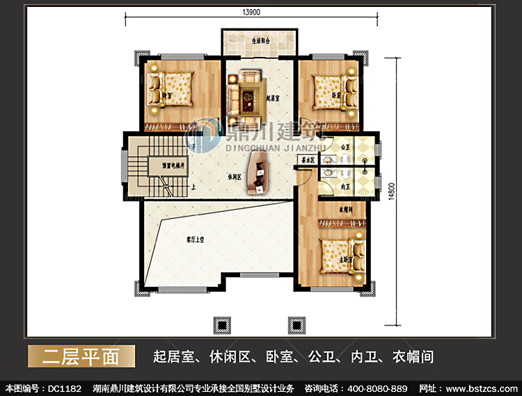 | 二 層: | 起居室、休閑區、臥室、公衛、內衛、衣帽間 | |||