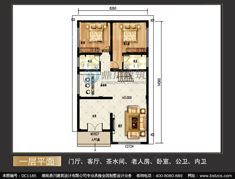 | 一 層: | 門廳、客廳、茶水間、老人房、臥室、公衛、內衛 | |||