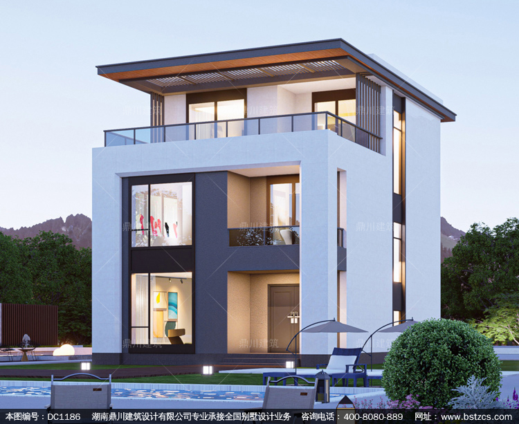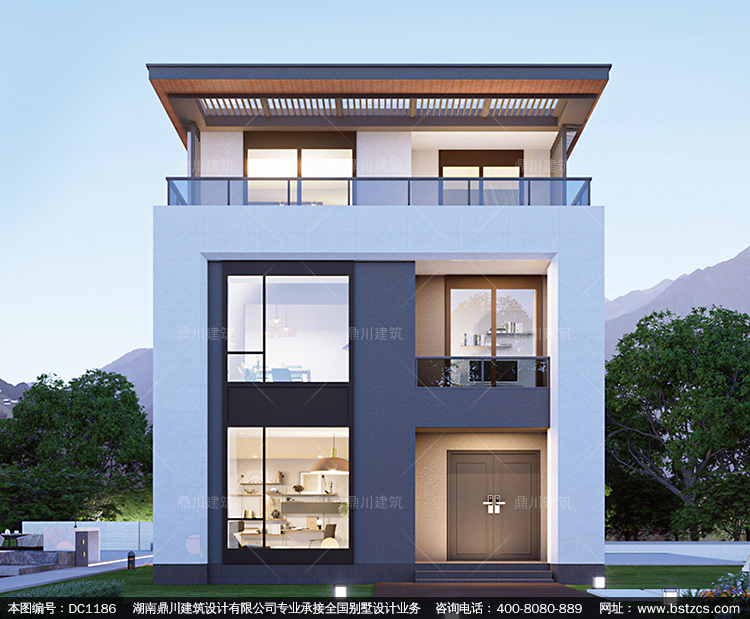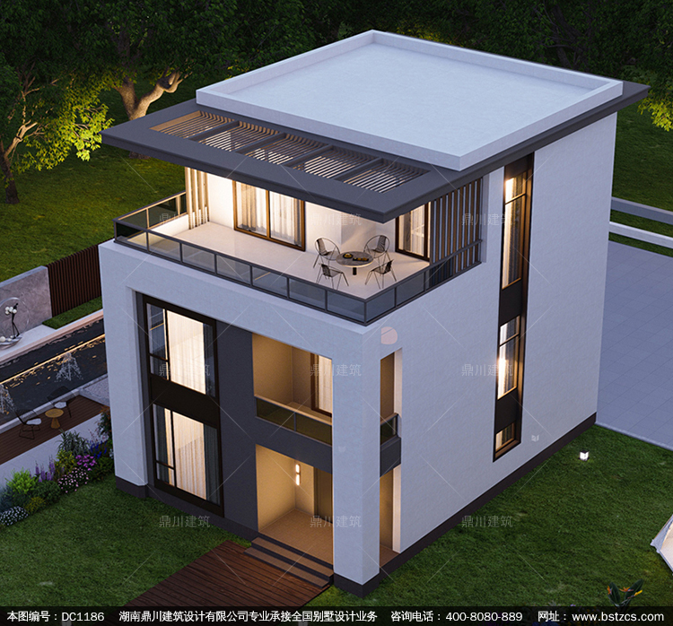 現(xiàn)代三層平屋頂別墅施工圖紙及效果圖_新農(nóng)村自建別墅設(shè)計(jì),鼎川建筑