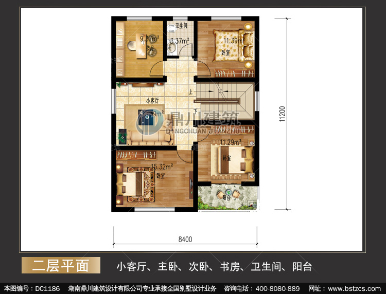 | 二 層: | 小客廳、主臥、次臥、書房、衛(wèi)生間、陽臺(tái) | |||