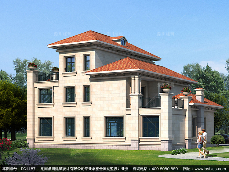 歐式三層復式別墅圖紙及效果圖_新農(nóng)村自建別墅設計,鼎川建筑