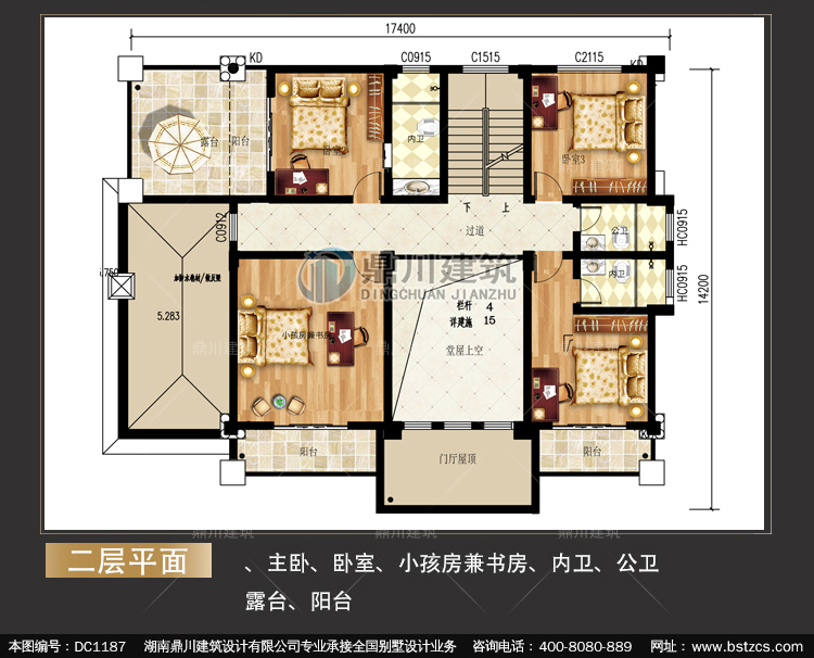 復式三層帶旋轉樓梯別墅圖紙及效果圖_農(nóng)村自建別墅設計,鼎川建