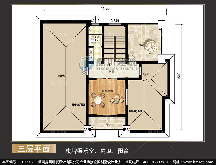 | 三 層: | 棋牌娛樂室、內(nèi)衛(wèi)、陽臺 | |||