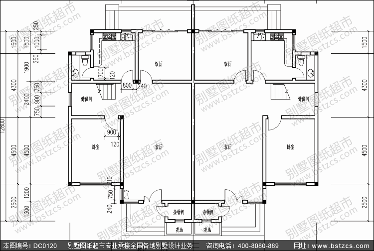 三層平屋頂雙拼別墅效果圖與施工圖_別墅設計圖紙,新農村別墅,