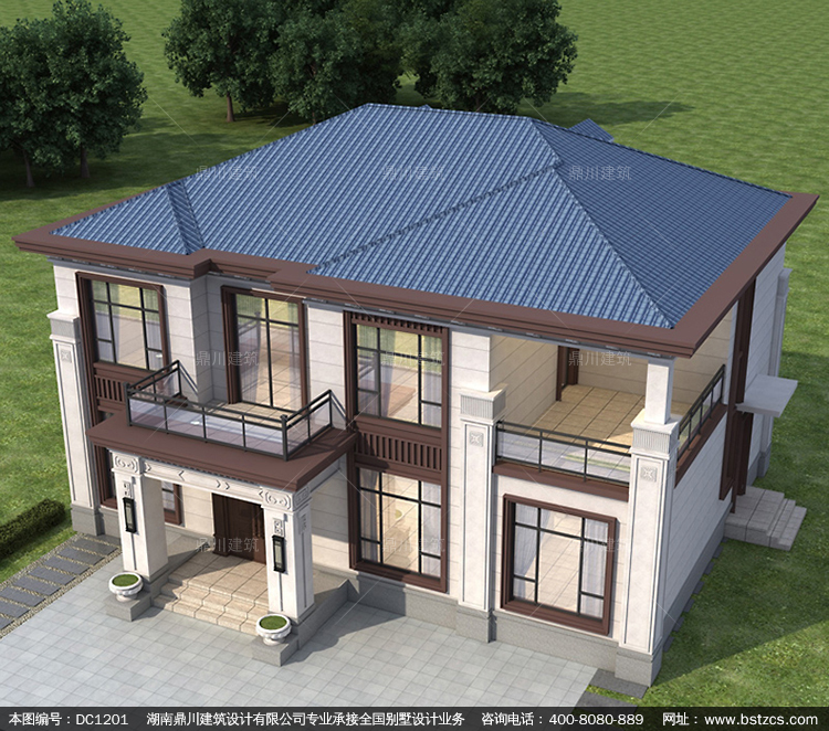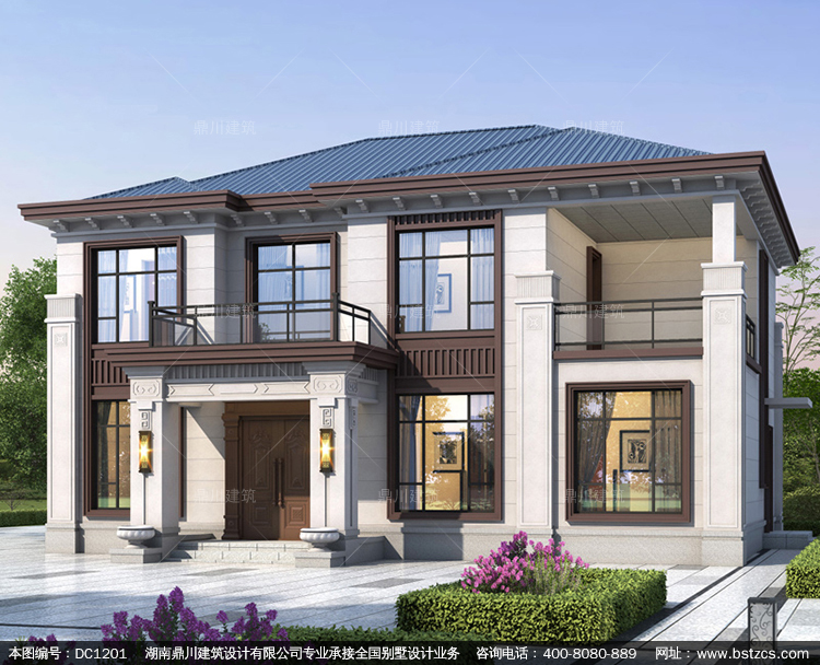 新中式二層別墅施工圖紙及效果圖_農(nóng)村自建別墅設(shè)計(jì),鼎川建筑