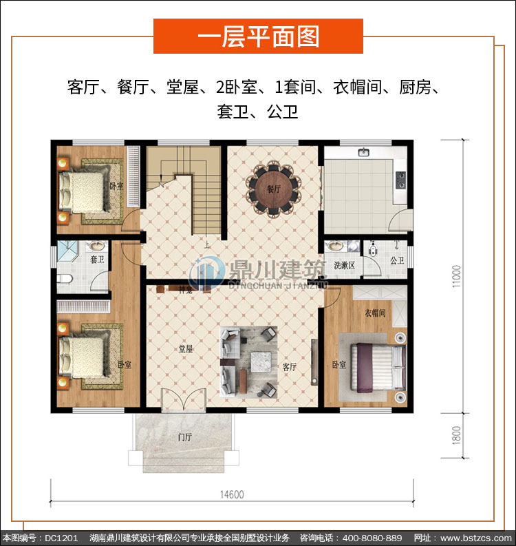 | 一 層: | 客廳、餐廳、堂屋、2臥室、1套間、衣帽間、廚房、套衛(wèi)、公衛(wèi) | |||