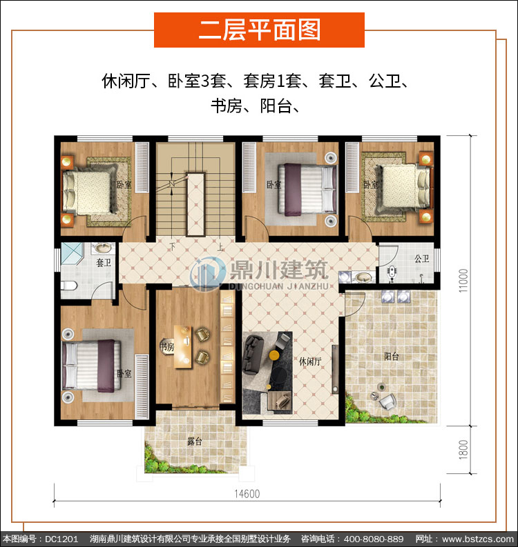 | 二 層: | 休閑廳、臥室3套、套房1套、套衛(wèi)、公衛(wèi)、書房、陽臺(tái) | |||