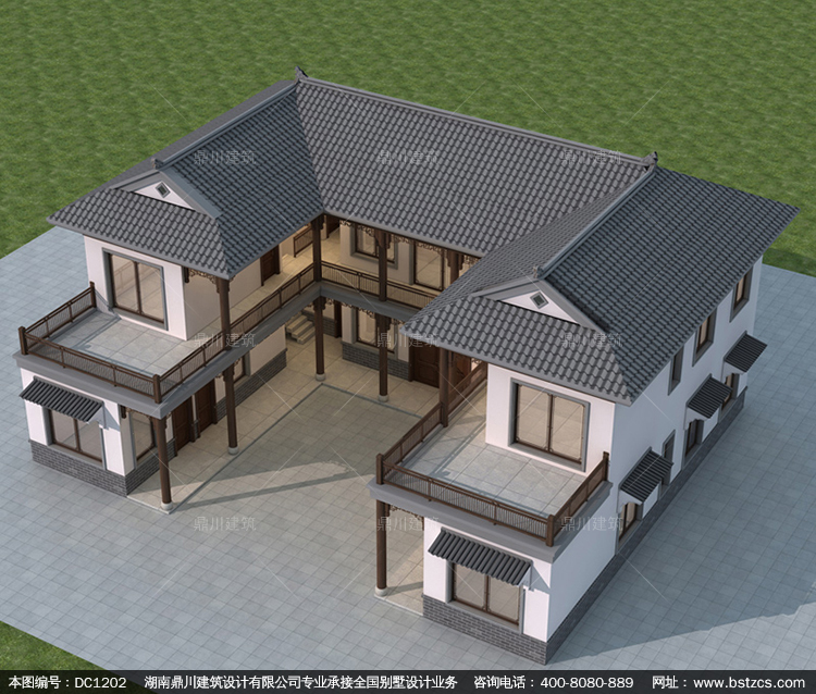 大氣二層中式四合院別墅圖紙及效果圖_新農村四合院設計,鼎川建