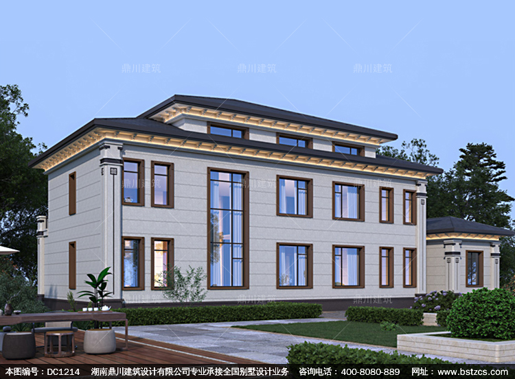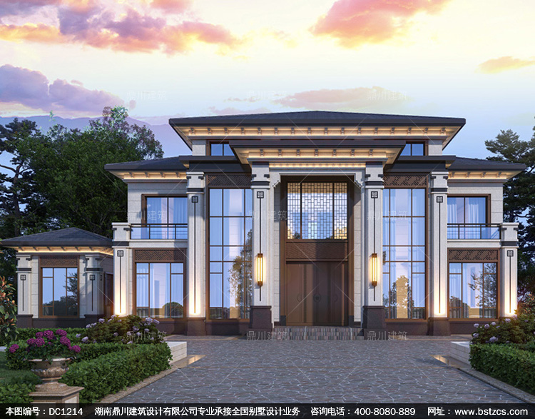 大氣新中式二層別墅效果圖及全套施工圖紙_農村自建房設計,鼎川