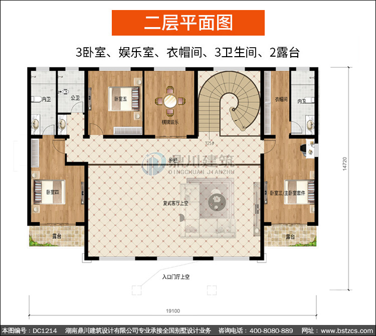 | 二 層: | 3臥室、娛樂室、衣帽間、3衛生間、2露臺 | |||