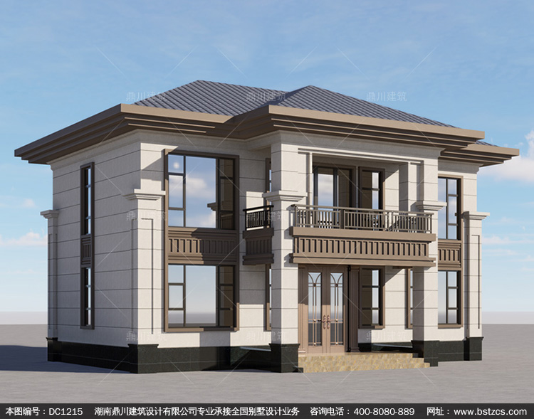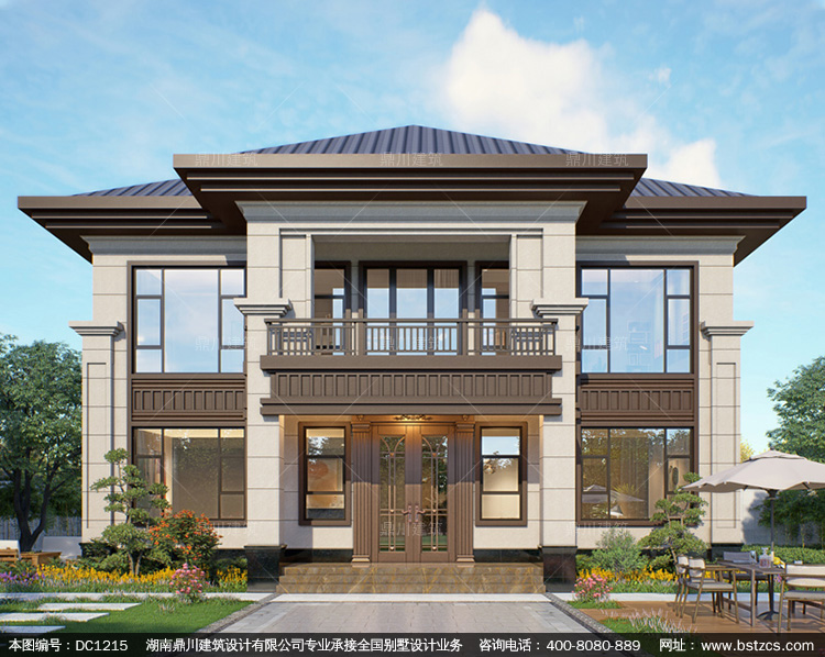 新中式二層帶陽臺別墅施工圖紙及效果圖_農村自建別墅設計,鼎川