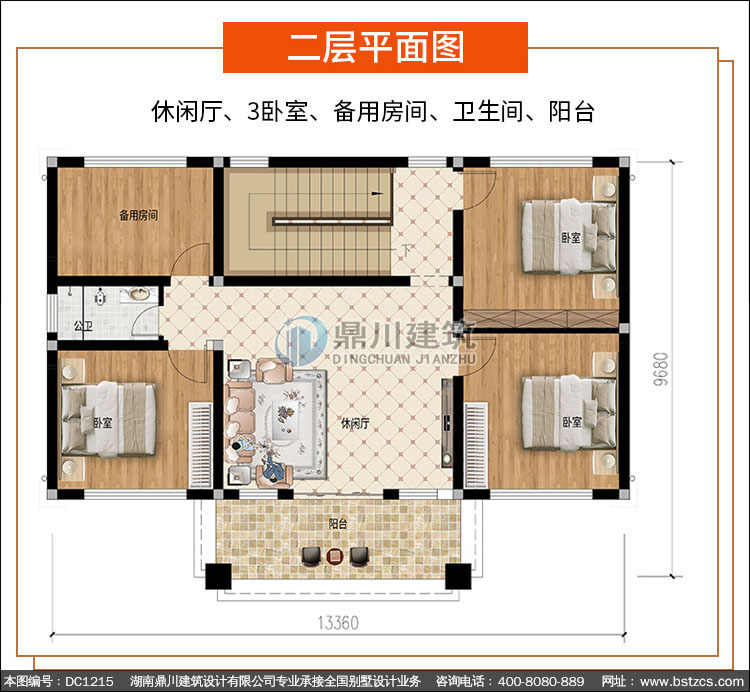 | 二 層: | 休閑廳、3臥室、備用房間、衛生間、陽臺 | |||