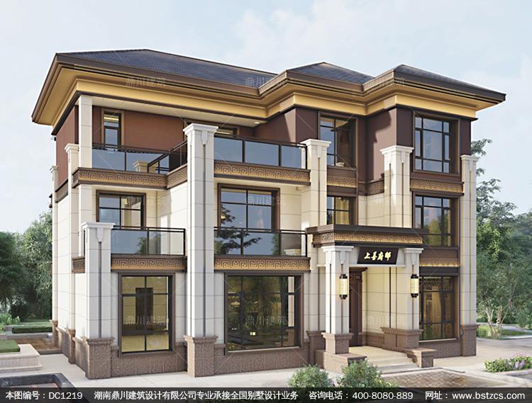 大氣新中式三層別墅設計圖紙及效果圖_農村自建別墅設計,鼎川建