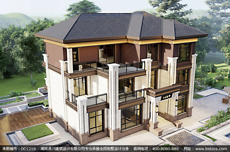 大氣新中式三層復式別墅圖紙及效果圖_農村自建別墅設計,鼎川建
