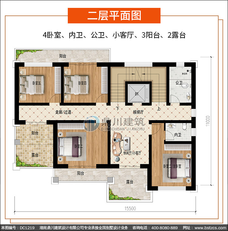 | 二 層: | 4臥室、內衛、公衛、小客廳、3陽臺、2露臺 | |||