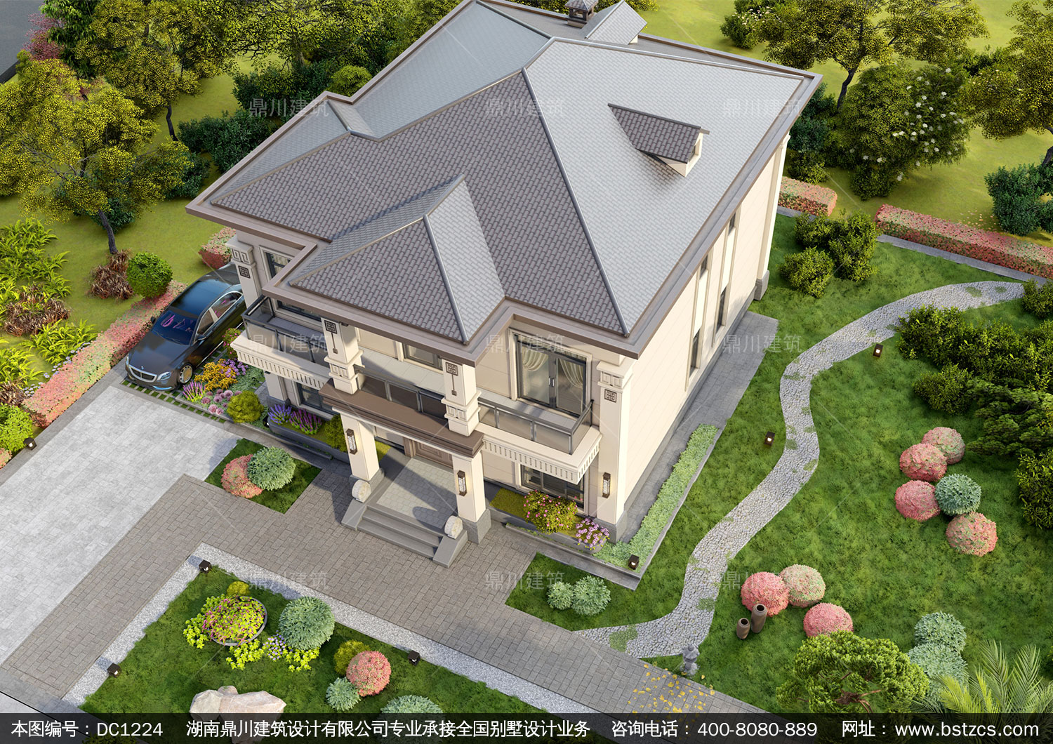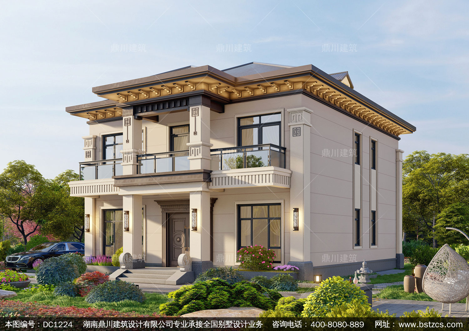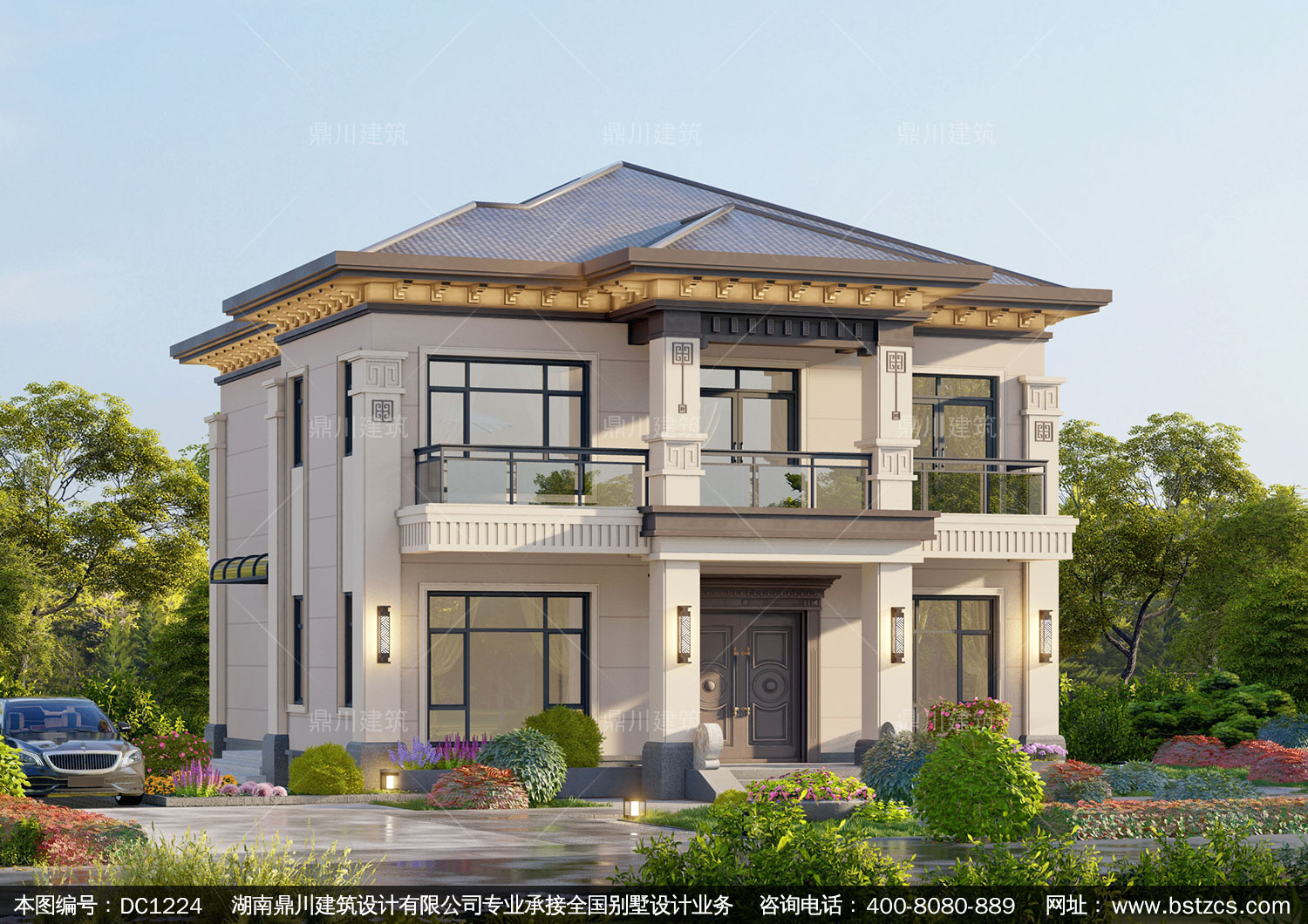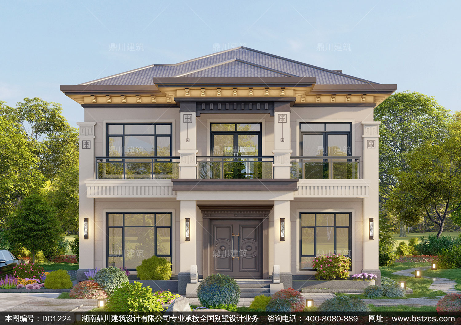 新中式二層復式別墅圖紙及效果圖_農村自建別墅設計,鼎川建筑