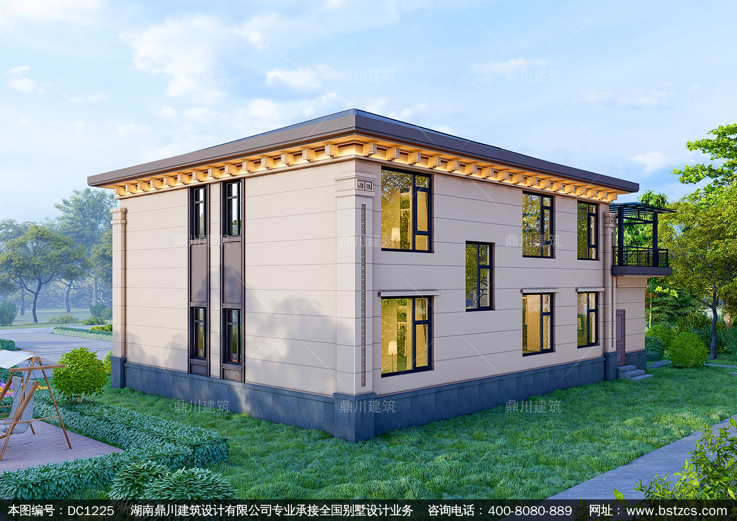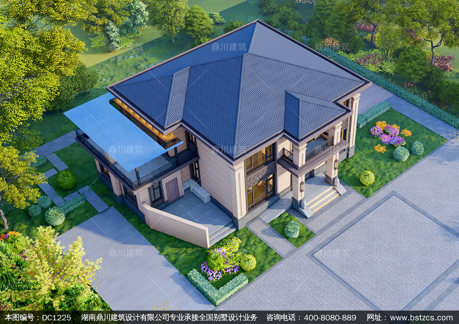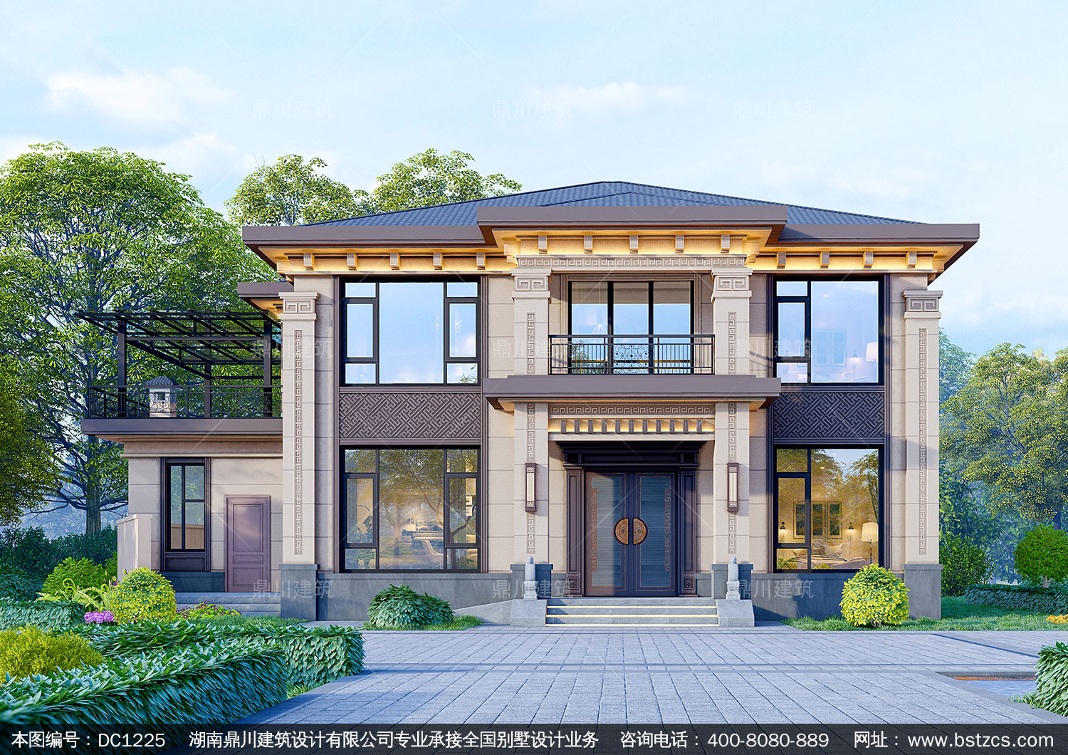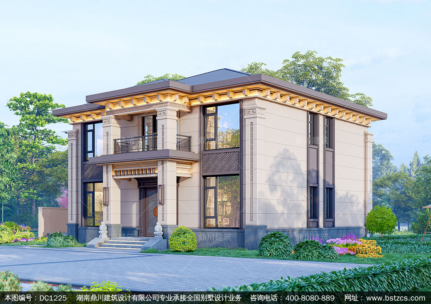 新中式二層復式別墅效果圖及施工圖紙_農村自建別墅設計,鼎川建